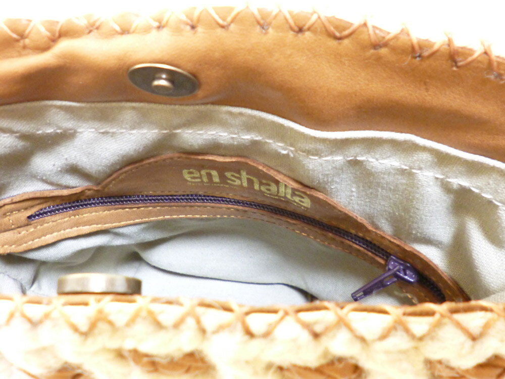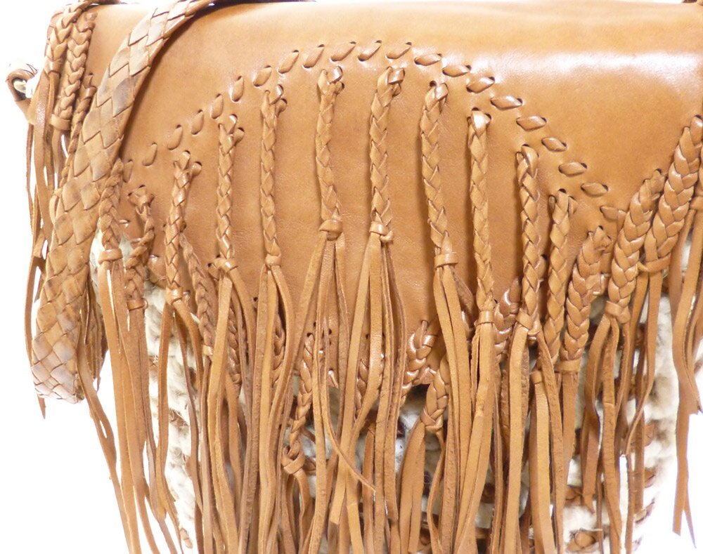 モロッコでのハンドメイド!Enshallaエンシャーラウール×レザーに編みこみフリンジがキュートな冬かごバッグ キャメル ショルダーバッグ ニットバッグ リアルレザー 本革 おしゃれ かわいい インポート