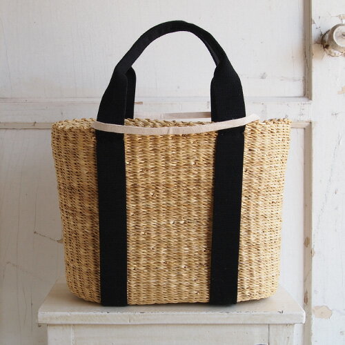 ムーニュ【MUUN】かごバッグ ナチュラル×ブラックハンドル ブラックポーチ CABA-P CABA P スクエア型ストローバッグ トートバッグ ハンドバッグ リゾート 手作り 巾着付きカゴバッグ スカーフ付き レディース ガーナ 天然素材 エレファントグラス ★送料無料